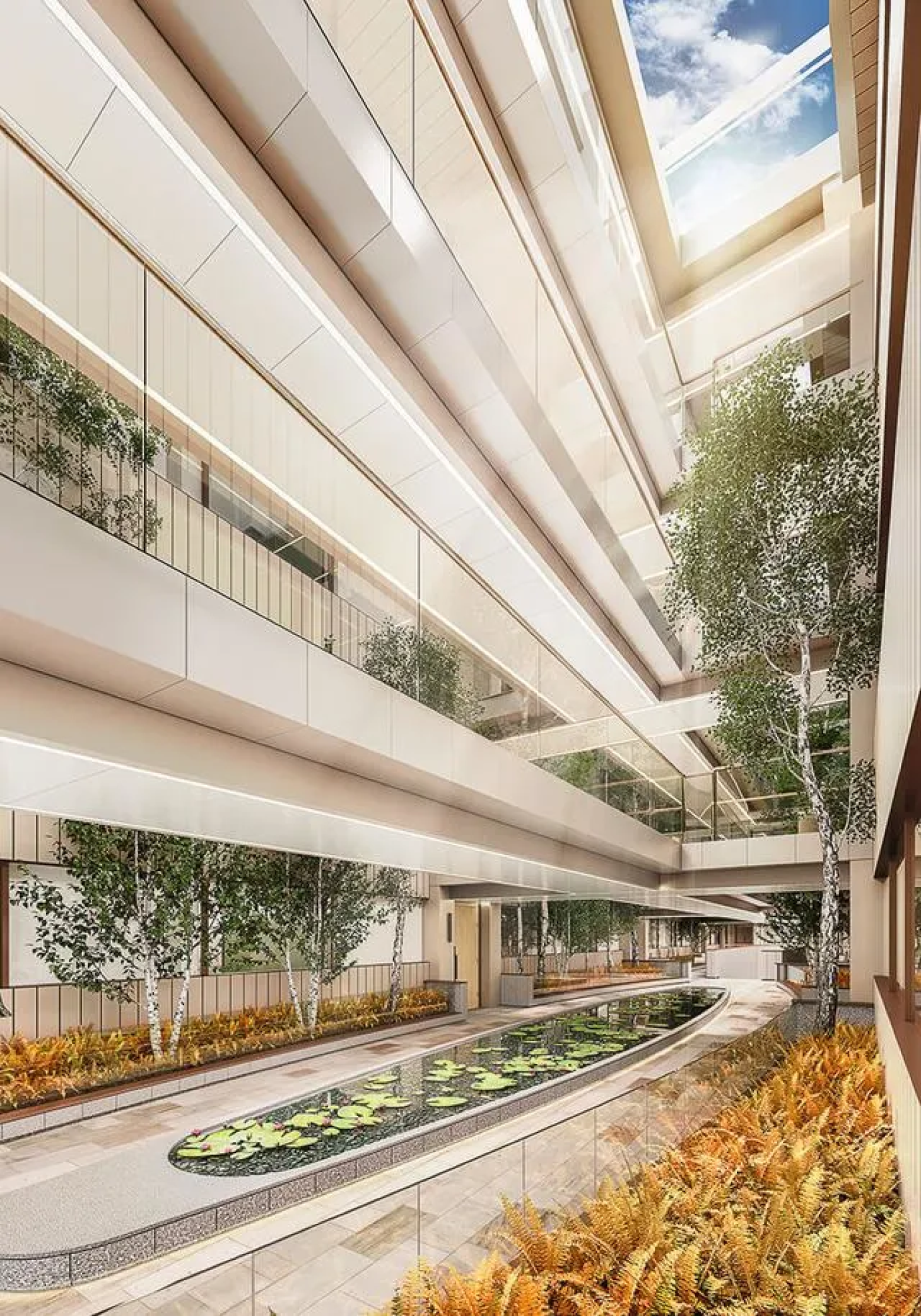 馬里波恩廣場有一座輝煌的5層玻璃帷幕庭院,使得所有家庭兩側都可以擁有自然採光,並保持有清新的空氣。乘坐全景玻璃電梯可從提供24小時禮賓服務的大廳直達所住樓層,並欣賞到開放式庭院裡的美景。