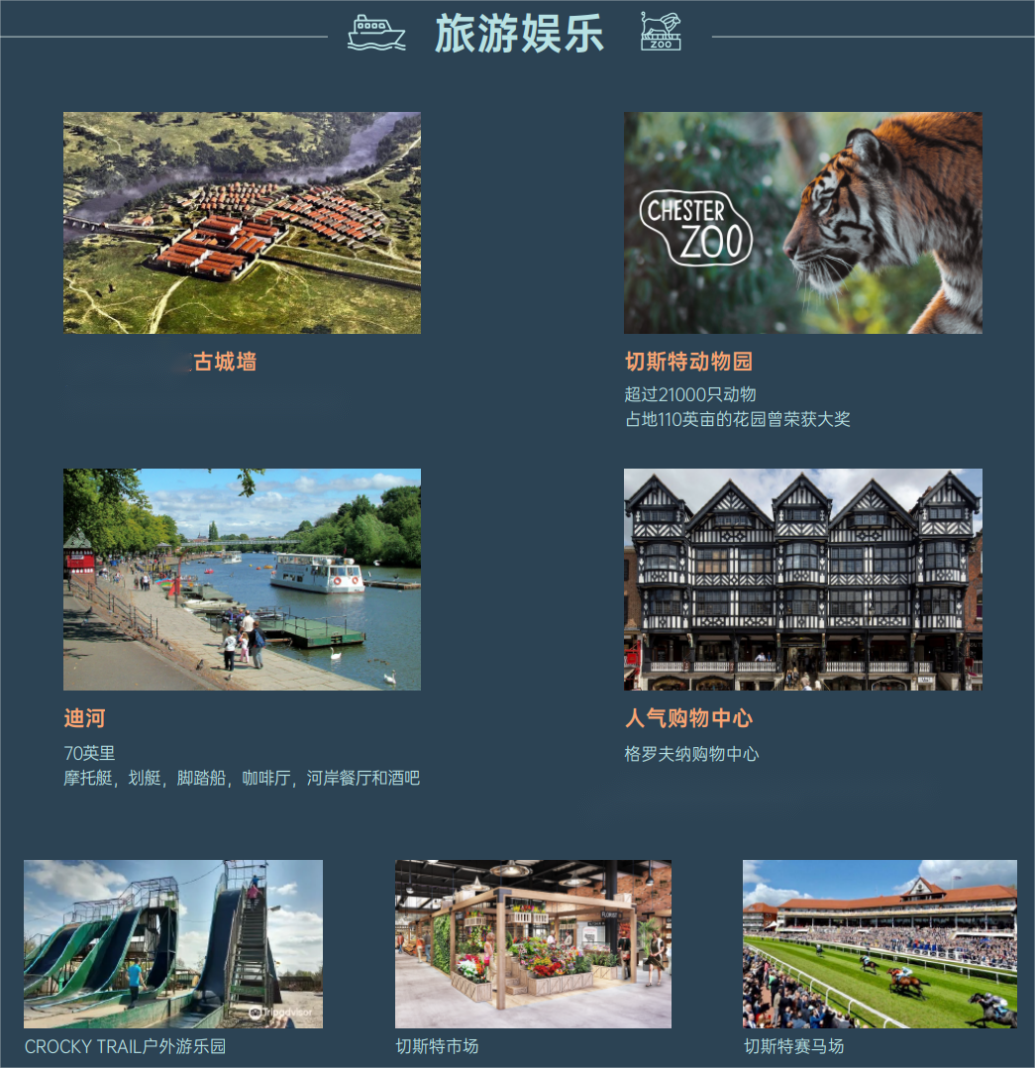 坐落於英格蘭西北部與威爾斯交接處,毗鄰曼徹斯特與利物浦,為英國的文化遺產保護城市之一。迪河River Dee河流經該市並與人工運河交相呼應,為該市增添了更豐富的人文和歷史氣息。該市保留了多個完整的古羅馬遺址和城牆,其優美的自然風光的歷史氛圍,使切斯特成為英國旅遊城市之一。