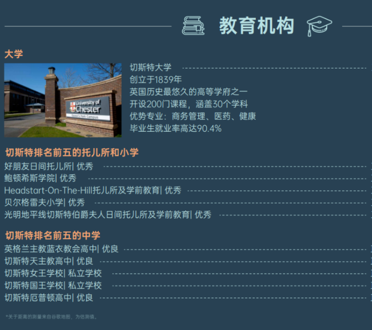 切斯特是英國安全的城市之一,曾被評為英格蘭西北地區安全的大學城,英國學生友善城市。在英國適合學生學習生活的50個城市評選中,切斯特更是一舉擊敗謝菲爾德,班戈等城市,僅次於利茲。