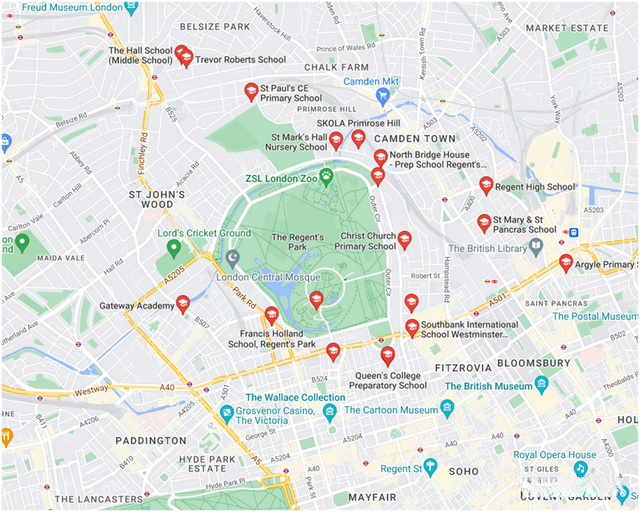 ·攝政公園旁,馬里波恩鑽鉑座標