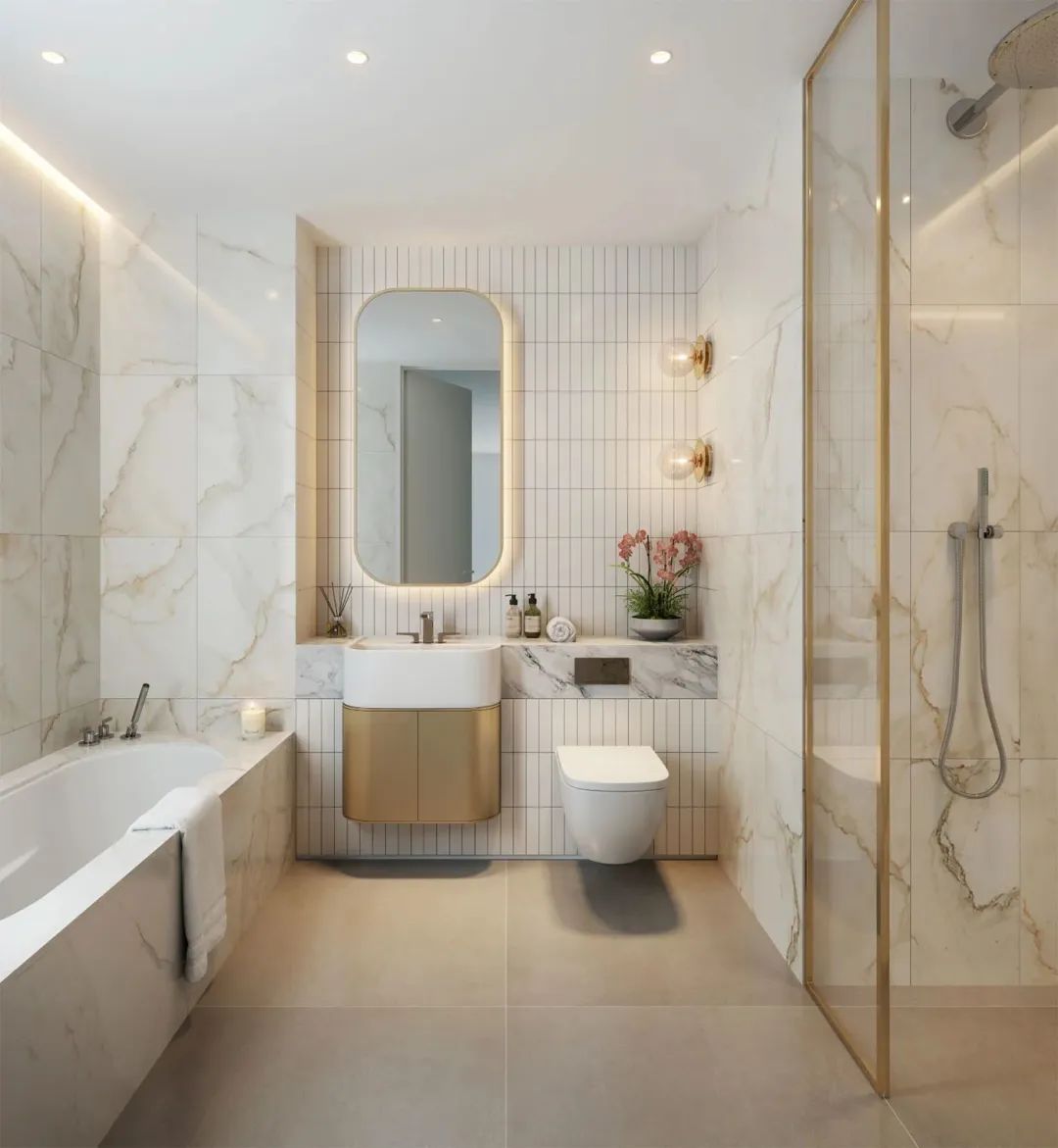 室內設計由屢獲殊榮的 Bowler James Brindley 操刀。公寓精裝交付,與外部的經典工業風格不同,室內的現代材料、紋理和色調都十分柔和,營造愉悅放鬆的居家體驗。
