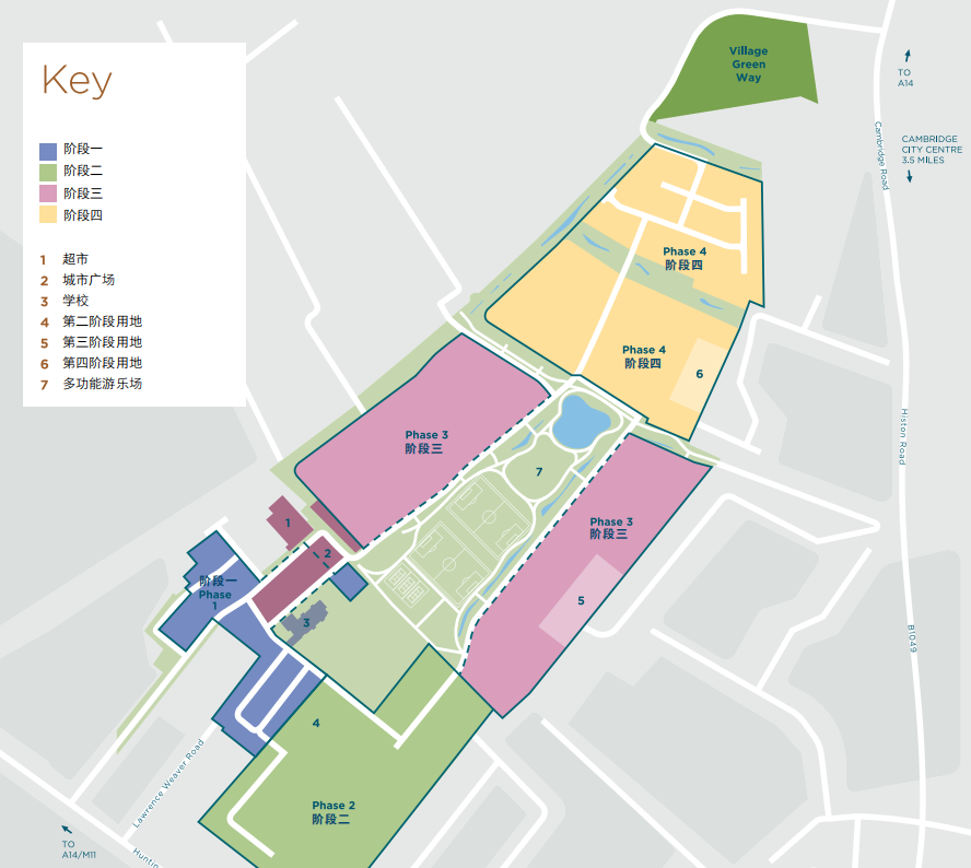 鄰近劍橋市中心的大型計畫劍橋綠洲Darwin Green正是投資劍橋的優選。整個專案一共有1,593單位,包括有一房及二房套房,以及二房、三房及四房別墅。重點在於工程持續擴建中,包括多項小區設施如小學、中學、超市、零售商店、多項運動設施、公共圖書館、小區會堂及大型公園等,落成後將會成為當地新小區。