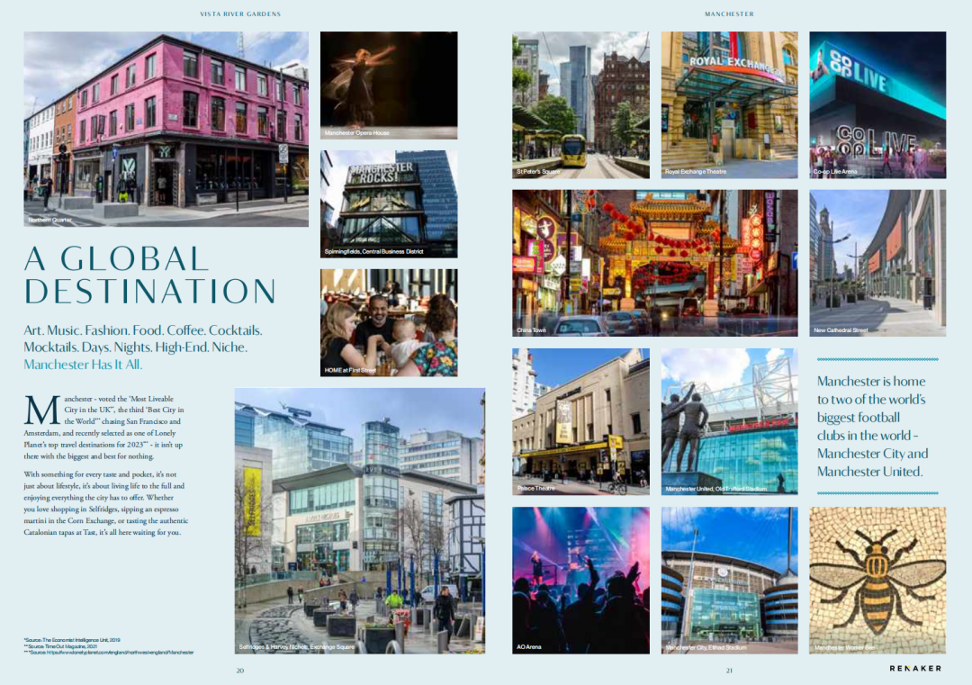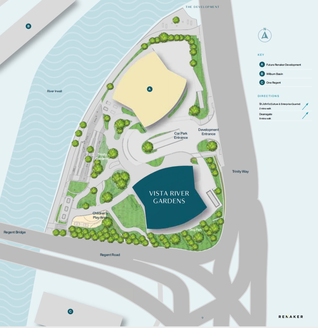 位於曼徹斯特市中心M3郵區,與River Irwell相鄰,身處曼徹斯特較大型都市重建計畫St John's重建區內,被譽為市中心新門戶。到主要金融商業區Spinningfields都是步行可達。附近亦有巴士站,輕鬆可到Oxford St。項目附近餐飲,休閒娛樂選擇眾多,步行可達大型商超Sainsbury's,樓下的Liverpool Rd沿途餐廳眾多,更可輕鬆拐角到Deansgate Rd, 各國美食,超市,酒吧齊集,住戶盡享市中心便利生活;專案由著名開發商Renaker開發,至今已成功交付超過6000個單位。