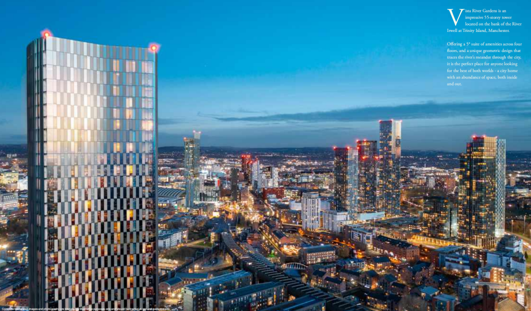 坐落於曼徹斯特市中心特瑞尼提島風景優美的Irwell河畔。55層樓高的建築由知名的SimpsonHaugh建築事務所設計,以蜿蜒曲折的Irwell河為靈感,呈現獨特的幾何形狀,為河畔花園的打造預留出足夠的空間,將都市生活與自然景觀完美結合。項目的所有1至3房及頂層豪宅,皆配有全落地玻璃窗,一覽河畔風格和壯麗的曼徹斯特天際線,將室內與室外的雙重自然享受精妙融合。