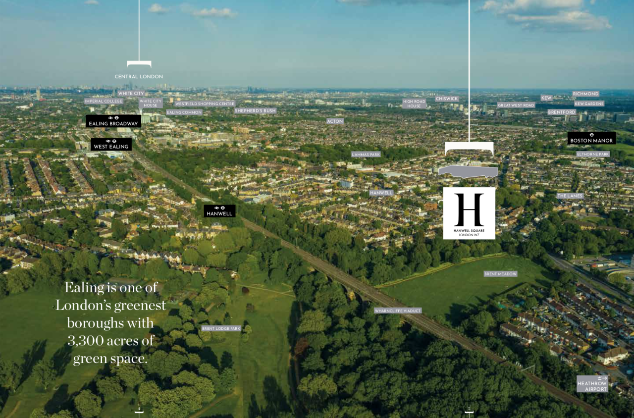 計畫位於西倫敦Ealing,是王公貴族、富商名人聚集的地方。時至今日,這裡依然是倫敦本地富人鍾愛的居住區。遠離繁華鬧市,貼近大自然、慢步調又具有濃郁文化底蘊的生活氛圍使之成為受追捧的地段。