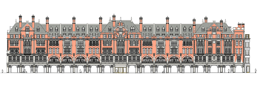 項目位於騎士橋的入口,為英國二級保護建築,建於1902年,該建築保留了愛德華七世風格的原始門面,經過開發商APML Estate精心修復延續了騎士橋的建築傳統和魅力。