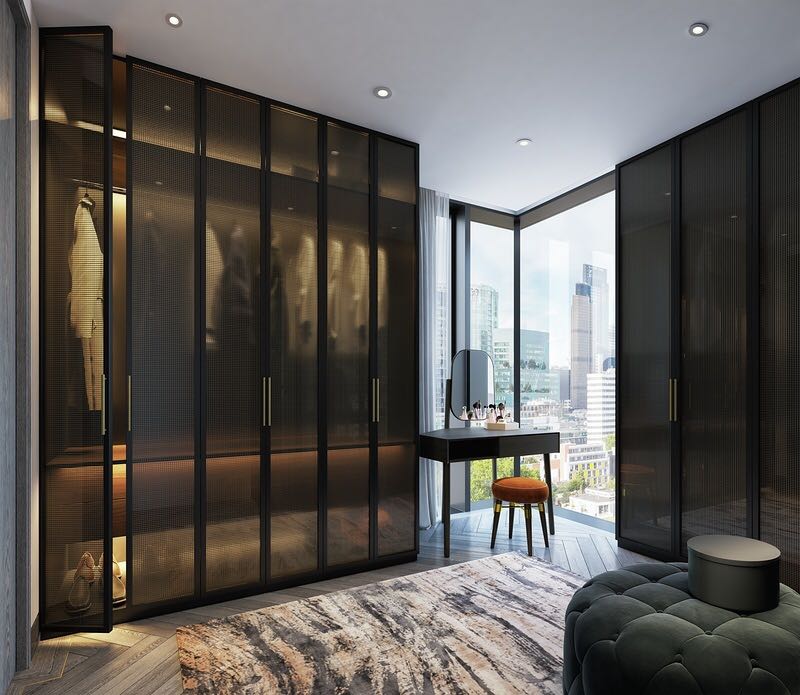 來到 36層,三臥四衛獨享此層的概念將隱密性體現的淋漓盡致。臥室高品質訂製衣櫃,並嵌有整合式感應燈。主臥室浴室採用了白石複合獨立浴缸,壁掛式黃銅飾面和石頭洗手盆。