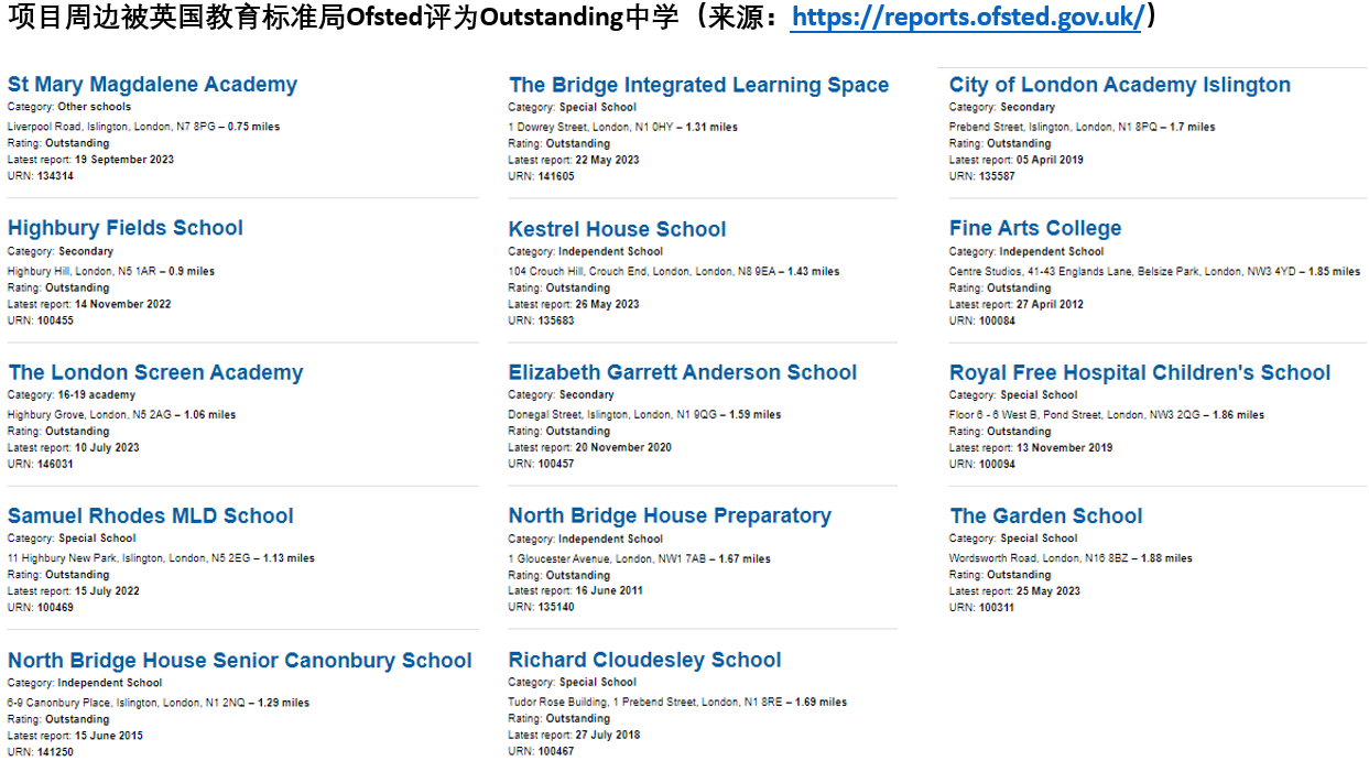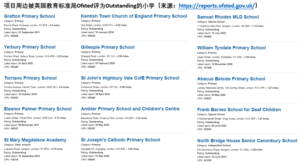 週邊眾多被英國教育標準局Ofsted評為高級Outstanding的中小學