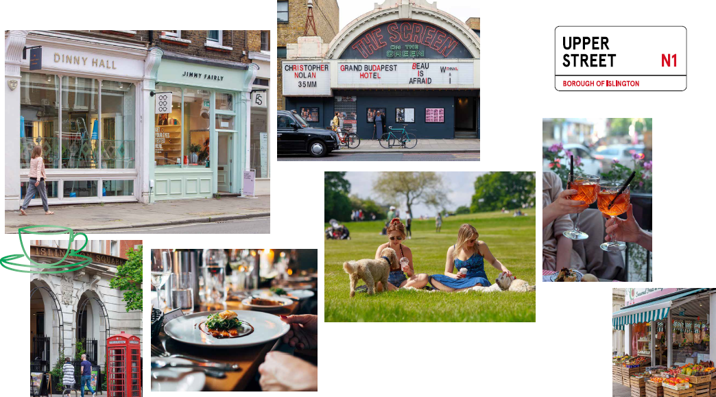 Upper Street,有許多特色風味餐廳、酒吧、服飾店等;
