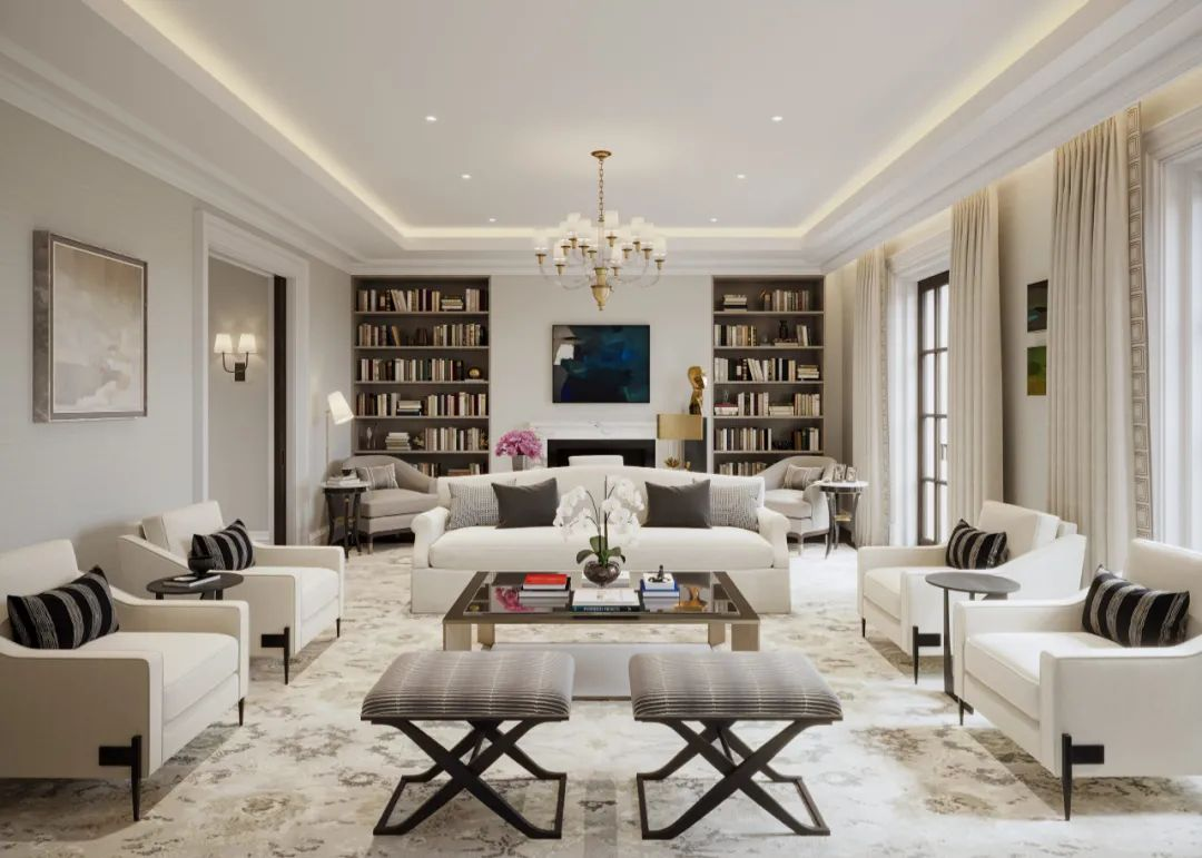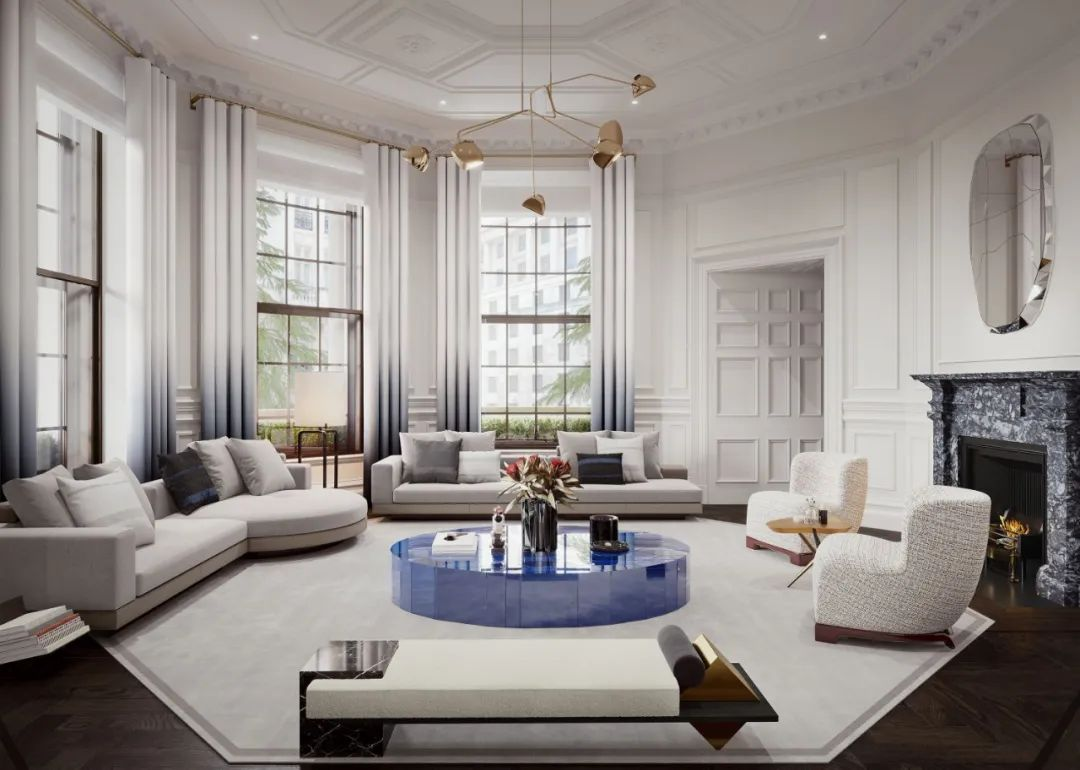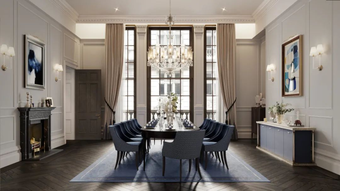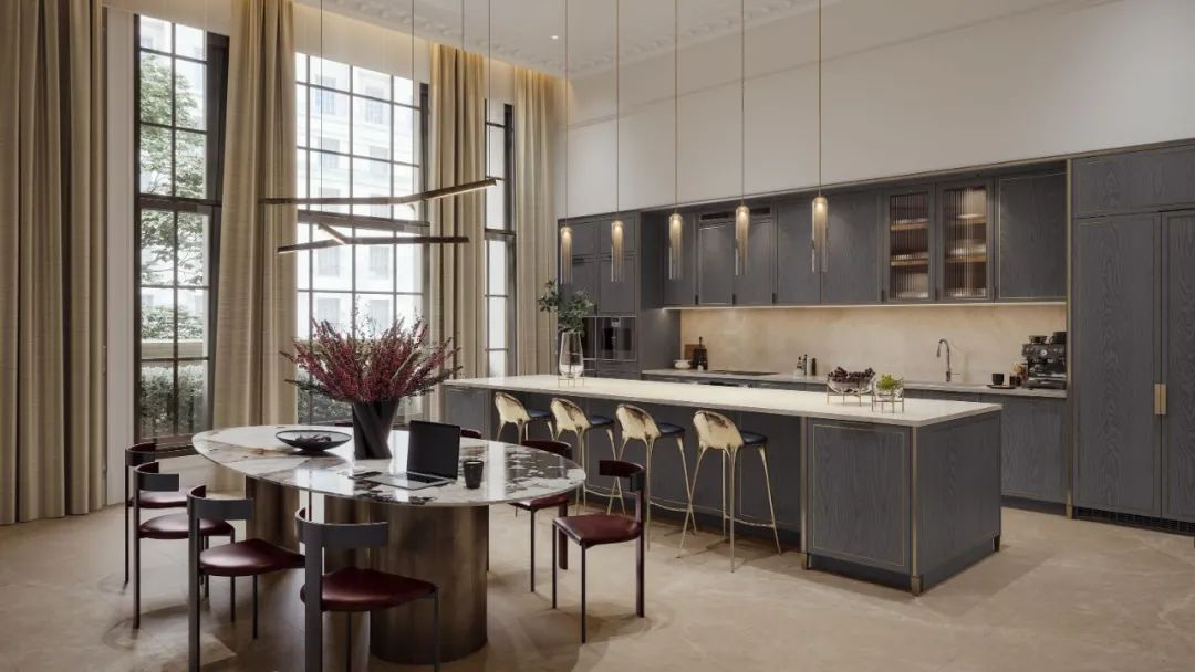 公共設施包括時尚泳池、宏偉入口大堂,歷史與現代設計並存。住宅由1508 London設計,並配備Smallbone廚房、橡木拼花地板、Waterworks黃銅與縞瑪瑙大理石等精緻用材。
