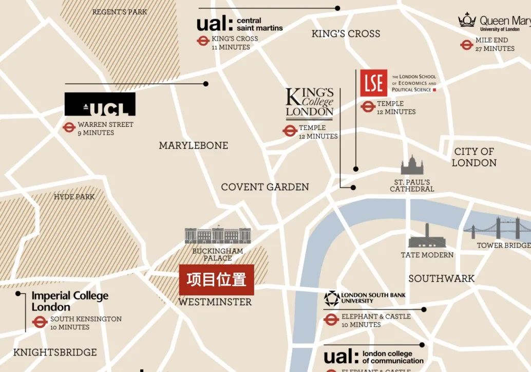地段優越:威斯敏斯特大教堂、特拉法加廣場、梅菲爾及聖詹姆斯等倫敦地標近在咫尺。