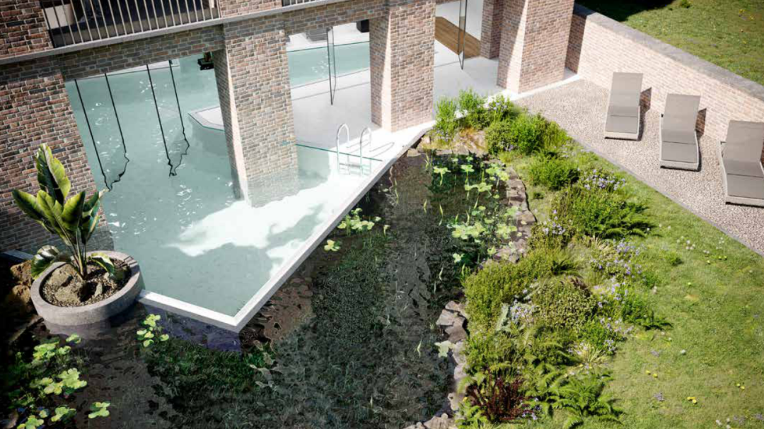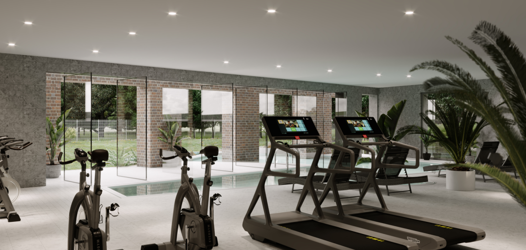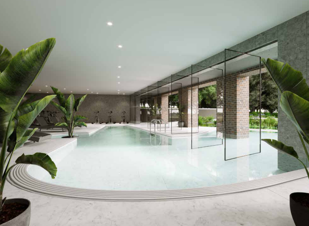 最有特色的是健身房+室內/室外游泳池組合區 。健身房與游泳區開放式共享,游泳池部分設置在室內,部分設置在室外,與荷塘水景相連,同時也享受對外的無邊綠蔭景色。設計特色鮮明。