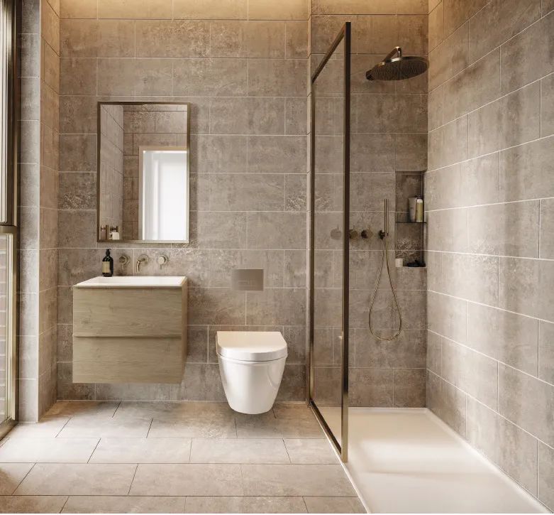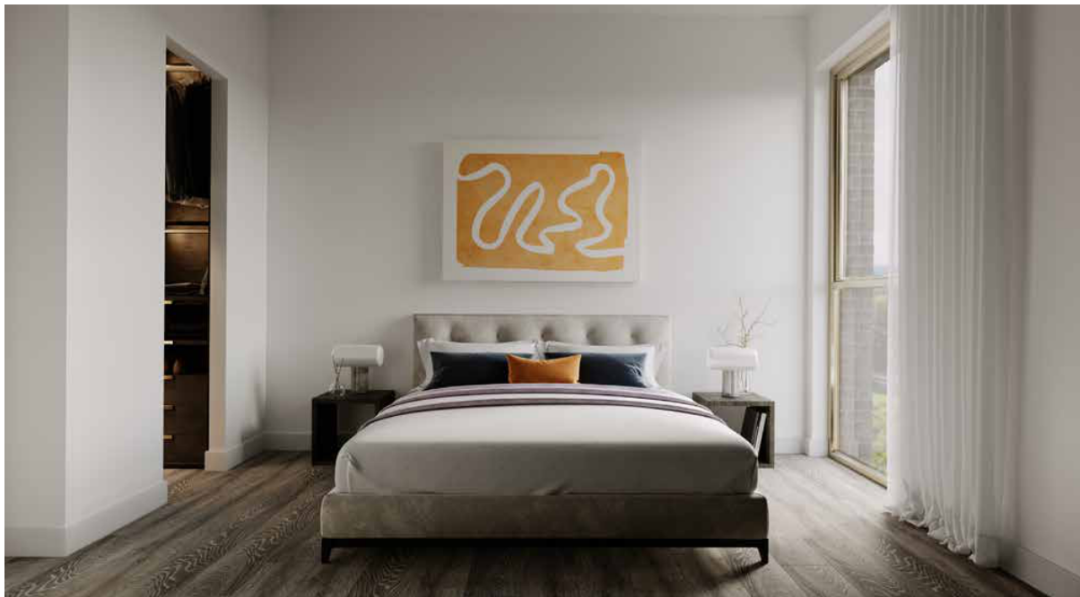 Middle Yard 專案室內設計以米灰色為主,突顯淡雅大氣的空間 居住品質 。所有公寓臥室均有2.6米淨高空間,自備地暖。
