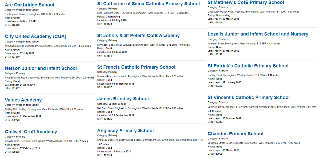 計畫週邊有眾多曾被英國教育標準局評為Good和Outstanding的中小學。
