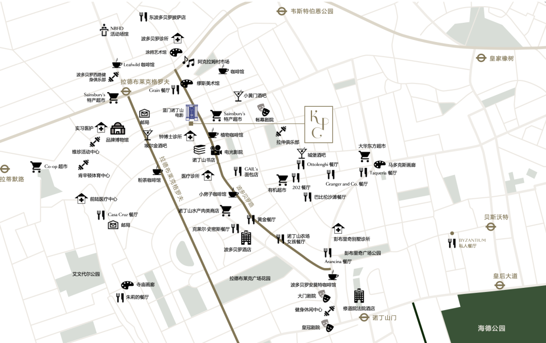 Kensington Park Corner位於諾丁山核心地區,該地區以其歷史文化中心的地位和多元化國際性融合聞名,每年都會舉辦的諾丁山嘉年華,和充滿藝術與古典氣息的Portobello 集市,使得這裡成為發展成熟、生活配套齊全、娛樂休閒豐富的傳統住宅區之一。
