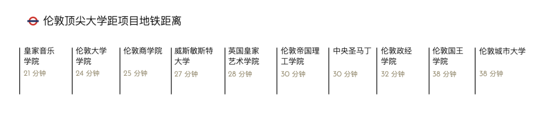 倫敦頂尖的大學也匯集於此,便捷的交通短時間內即可到達帝國理工、倫敦商學院、中央聖馬丁等知名學府。