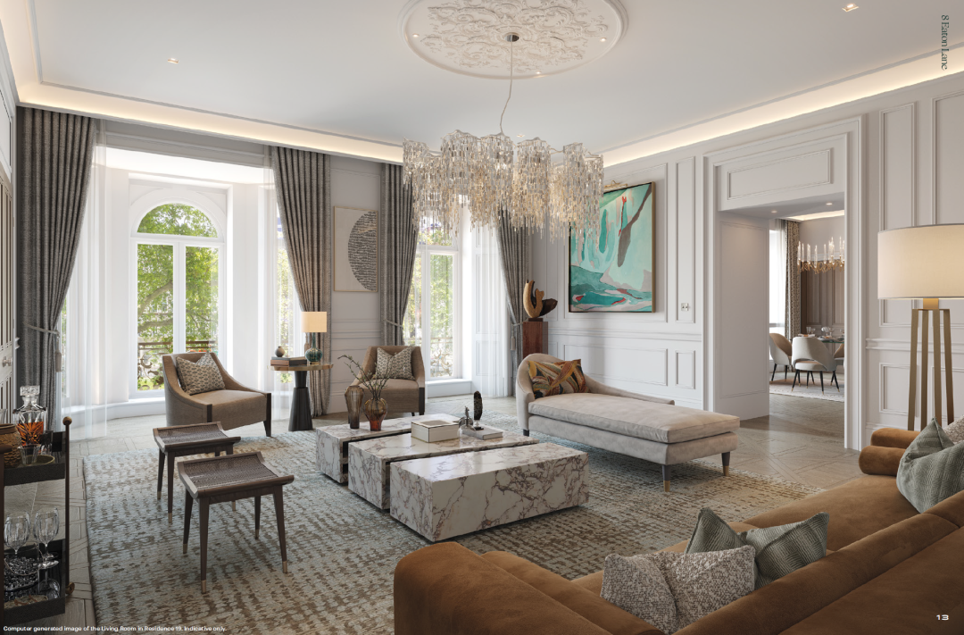 8 Eaton Lane同時也是該區域值得期待的貴族式高端豪宅,這棟二級保護建築部分戶型可以遠觀白金漢宮,部分可以俯瞰Grosvenor Gardens,部分層高達到3.2米,從傳統的弧形窗戶望外觀看,滿滿盡是繁華。