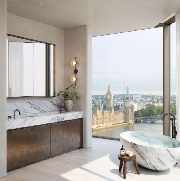 除了奢宅本身以稀為貴,與The Doulton一河相隔的威斯敏斯特市政區,還在2021年宣布了建房新規:未來申請的新項目每間公寓將不得超過200平米,與之相鄰的肯辛頓與切爾西也已準備效仿。這意味著,雖然The Doulton的行政區劃不屬於以上兩區,但由於其臨河且正面國會大廈,它可能將關閉近期倫敦市中心地段的新建豪宅大門。