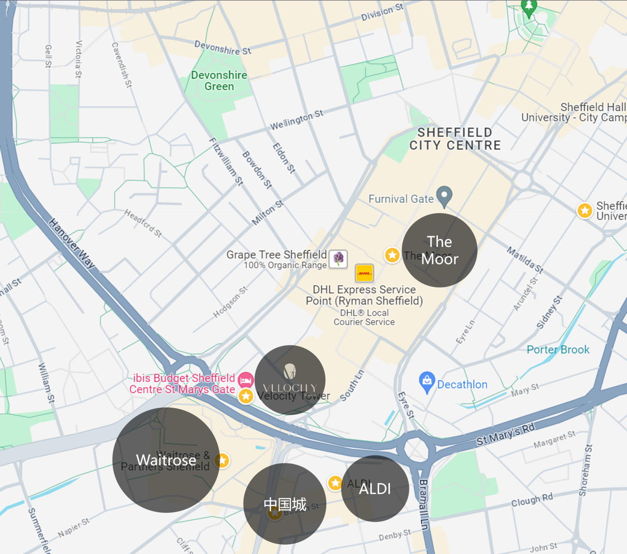 - 核心地段:謝菲爾德市中心核心地段,位於謝菲爾德大學和謝菲爾德哈勒姆大學之間。