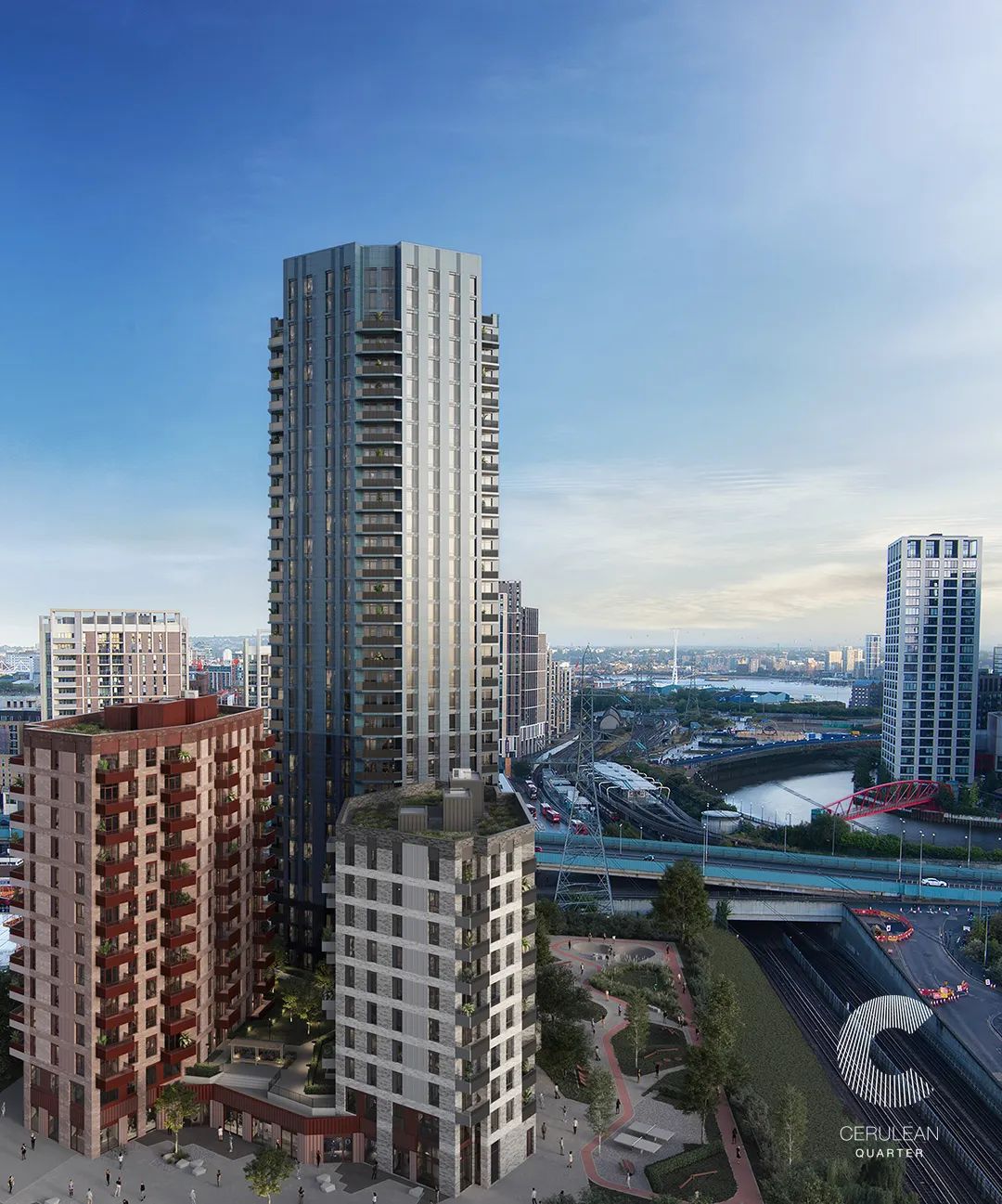The Tower作為Cerulean Quarter計畫第一期首棟,也是較高的地標大樓。亮眼的藍色外觀,既來自坎寧鎮地區文化淵源,也像徵著19世紀該地區舉世聞名的鑄鐵工藝。