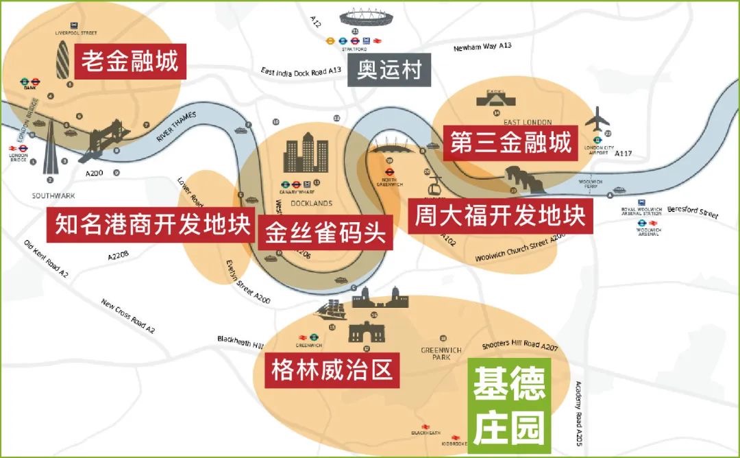 3. 地理位置優越。基德莊園坐落在大名鼎鼎的「倫敦後花園」、倫敦東三區的皇家自治區——格林威治,與金絲雀碼頭新金融城和倫敦第三金融城均只相隔一條泰晤士河。