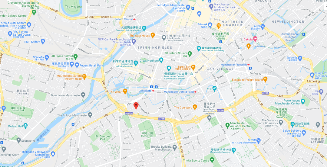 鄰近市政廳及唐人街,距離曼徹斯特三所大學(曼徹斯特大學、曼徹斯特城市大學以及北方皇家音樂學院)騎車可達,同時毗鄰市中心小學。