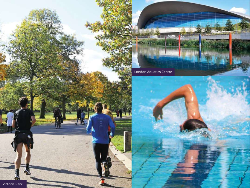 建案附近的伊麗莎白女王奧林匹克公園,可以探索公園、運河、運動場地,體驗世界上最長的178公尺隧道滑梯,或是奧運級的游泳場館。西漢姆聯足球俱樂部的主場館正是在奧林匹克公園內的倫敦碗London Stadium,目前可容纳約6萬人,英超聯賽中排名第四。