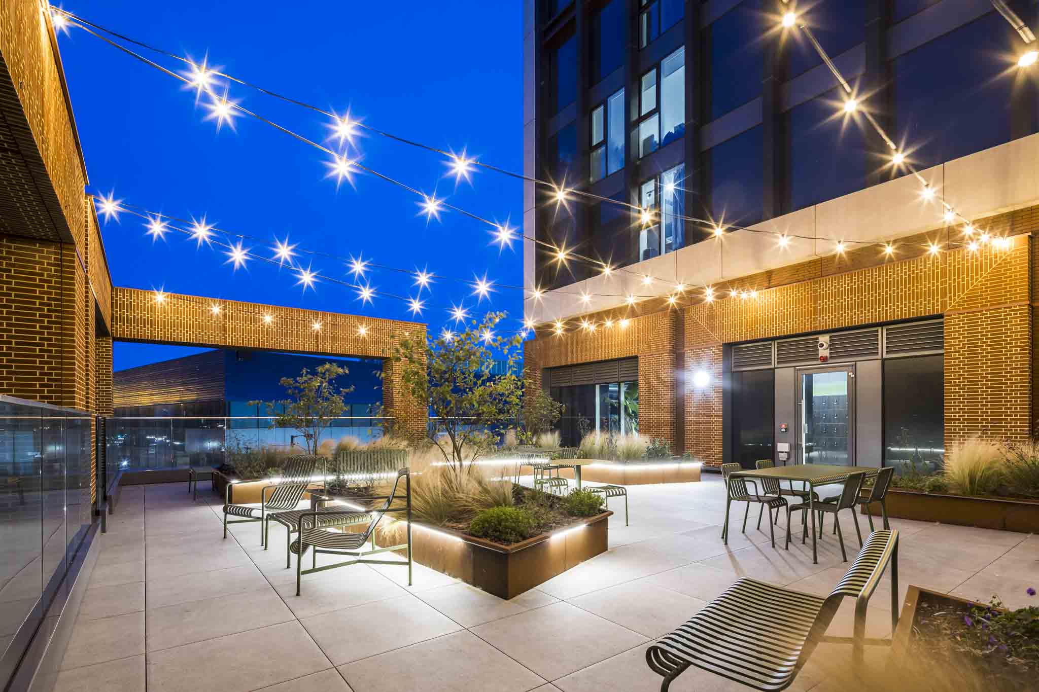 生態空中花園與頂樓酒吧延伸生活場景;天際無邊際泳池可俯瞰都市夜景。