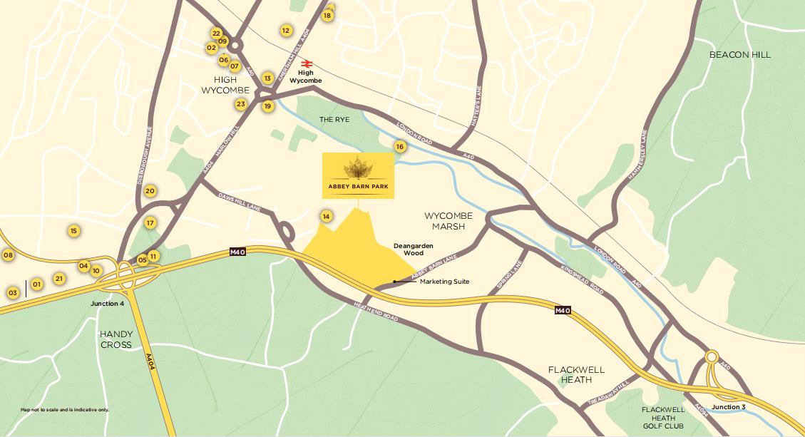 交通便利,緊鄰M40公路。從High Wycombe搭乘火車,可快速抵達牛津、華威等周邊城市,三站可達London Marylebone。